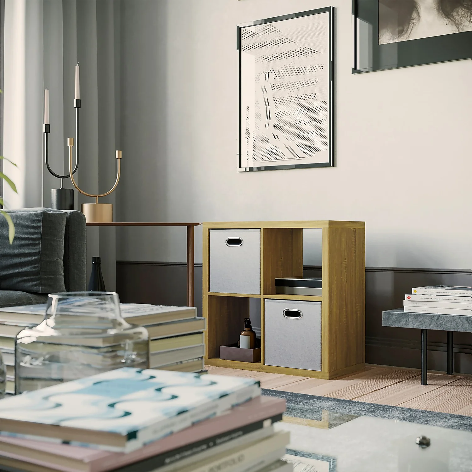 Storage sorted. That’s our Clever Cube collection. This woven silver Clever Cube fabric insert perfectly fits our Clever Cube storage units. It conceals clutter like books and clothes, keeping your items out of sight but still easily accessible. The inserts are available in many different finishes and colours, so you can pick what suits your taste and space.