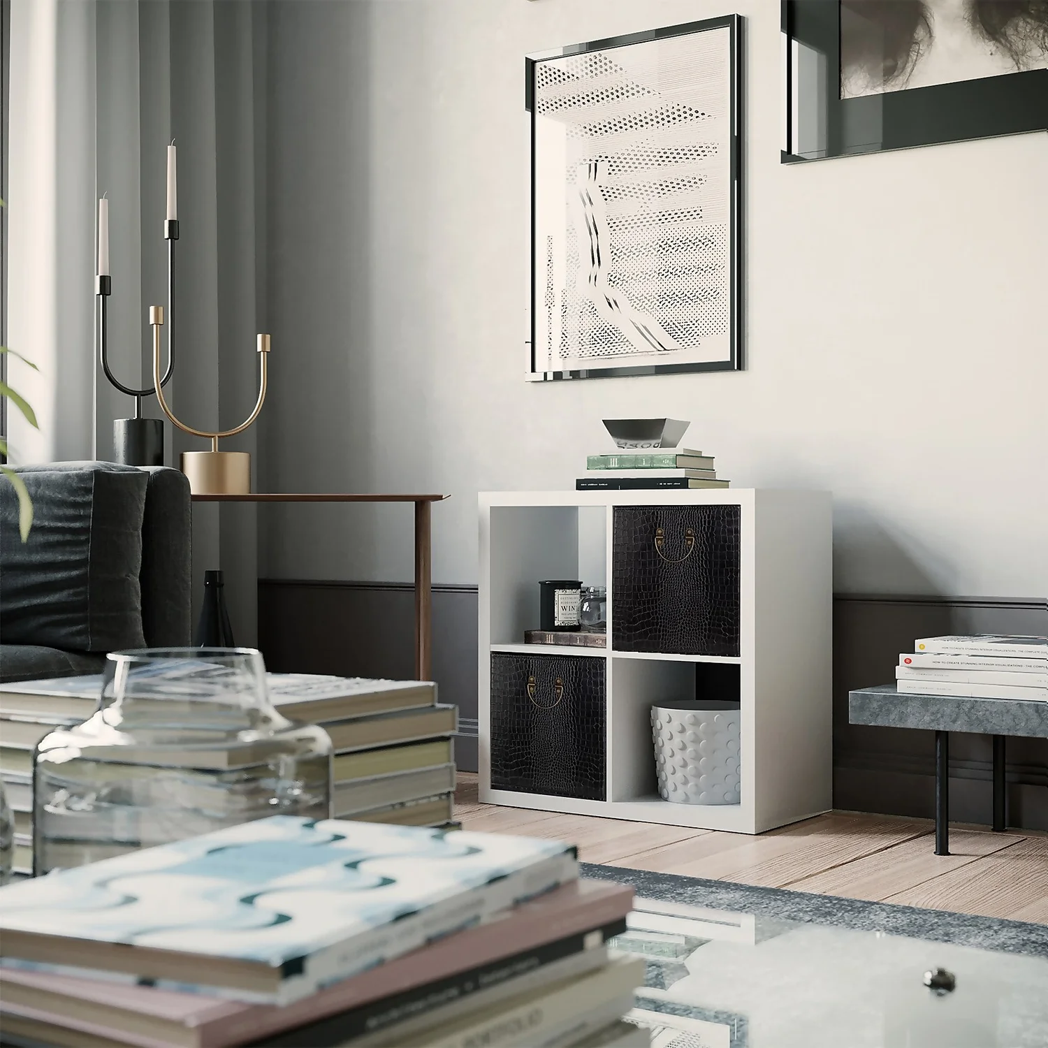This Insert features a black, faux croc leather feel with metal handles for easy sliding or movement. Made with a premium construction, you can use this Insert alone, on shelves or with a Clever Cube unit; they are as good-looking as they are functional.