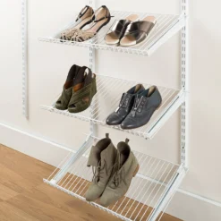 - Three woven fabric boxes are included in three colours; orange, green and yellow as well as four book display shelves